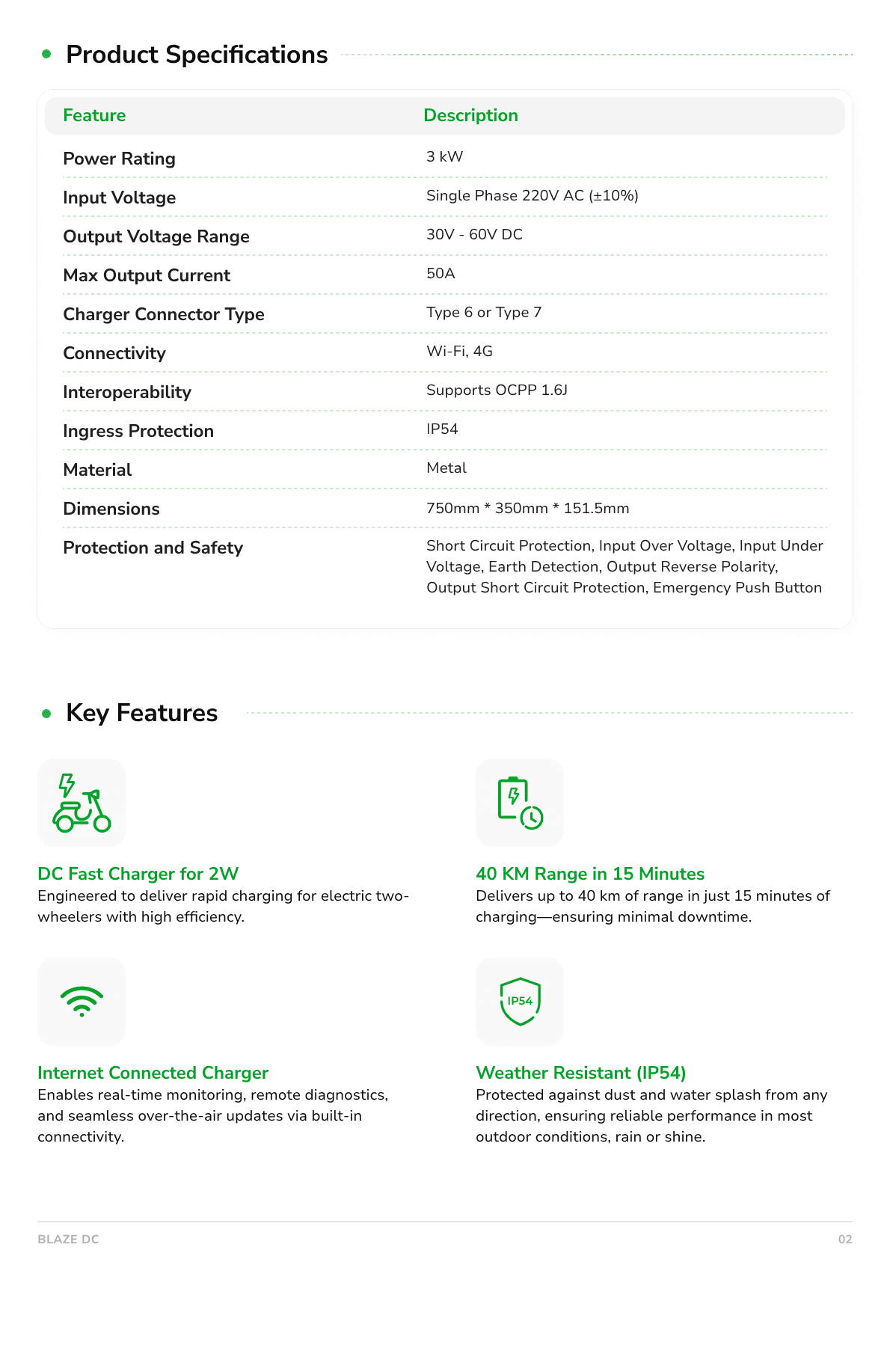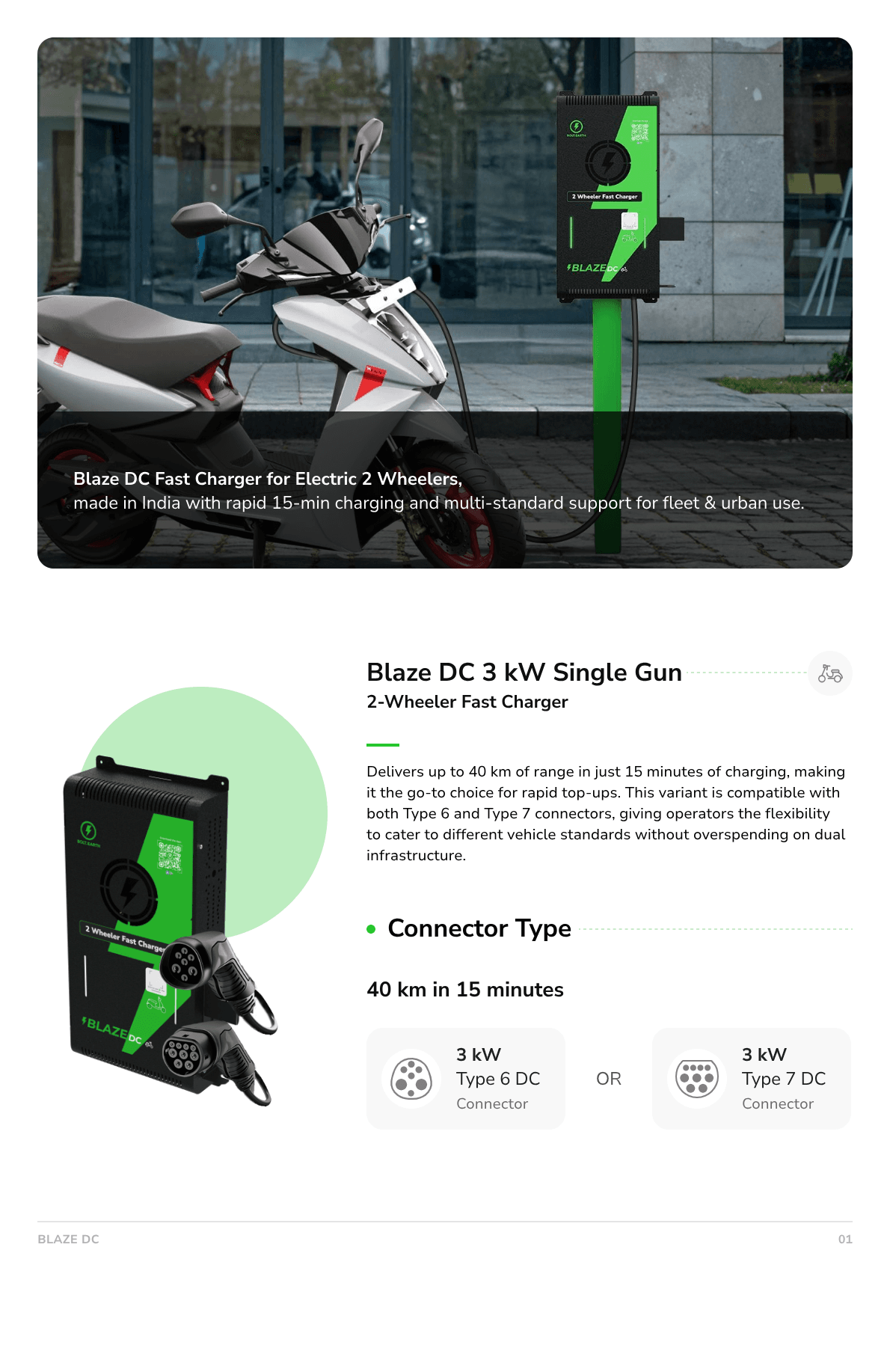 Delivers up to 40 km of range in just 15 minutes of charging, making it the go-to choice for rapid top-ups. This variant is compatible with both Type 6 and Type 7 connectors, giving operators the flexibility to cater to different vehicle standards without overspending on dual infrastructure.